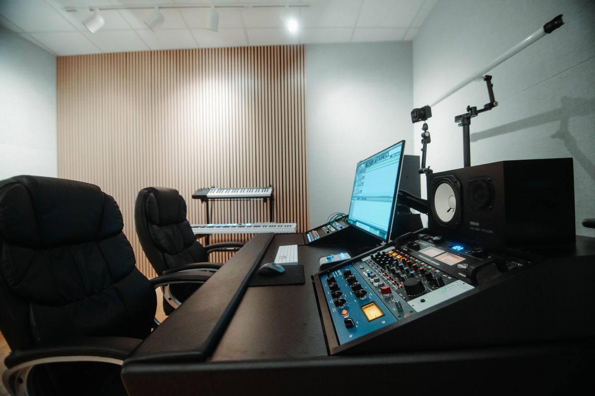 Our mixing focused room with a spacious control area and two large isolation booths, perfect for multiple vocalists or a small band. It’s designed for precision, comfort, and creative flexibility.